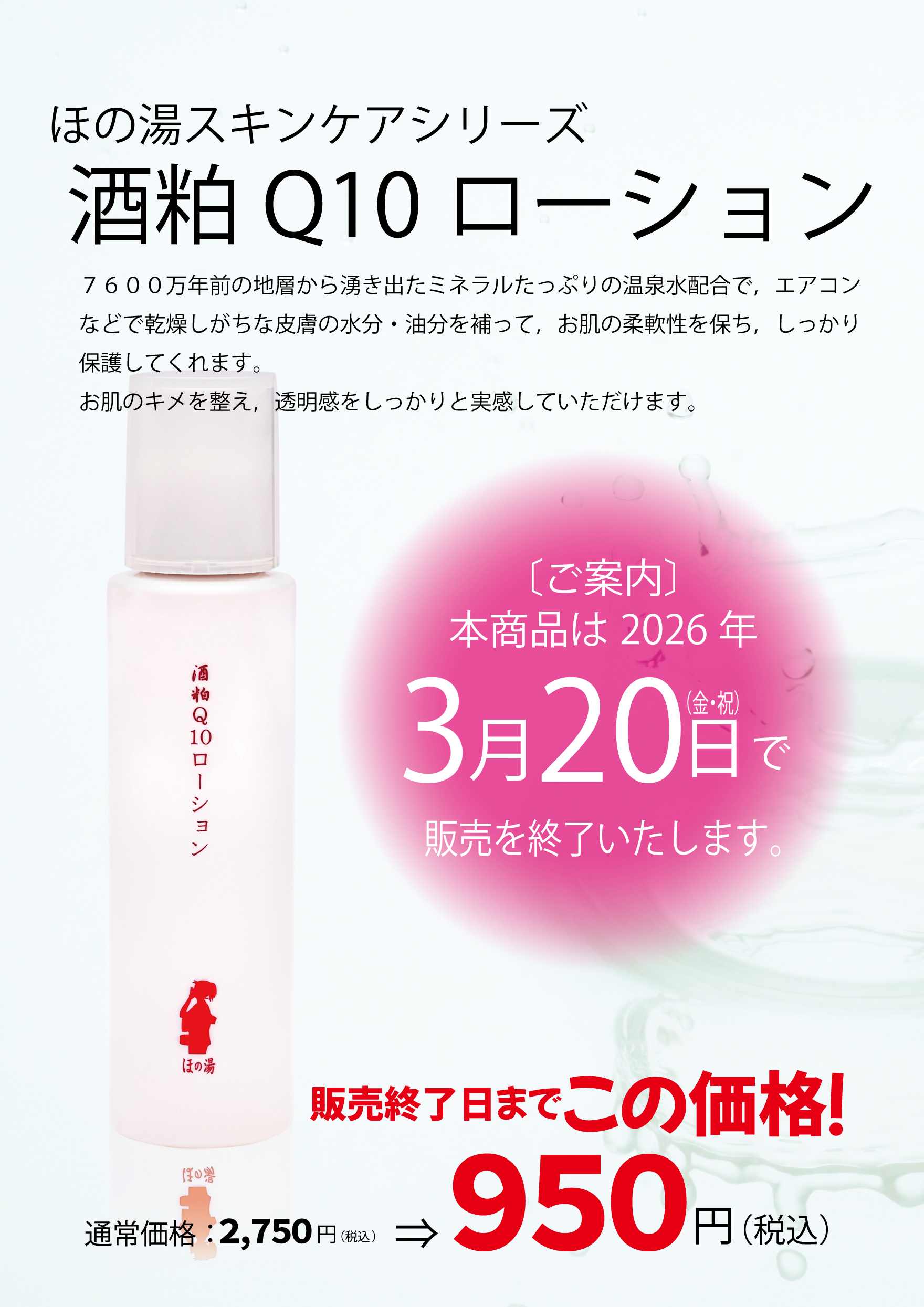 このたび、2026年3月20日をもちまして、「酒粕Q10ローション」の販売を終了いたします。